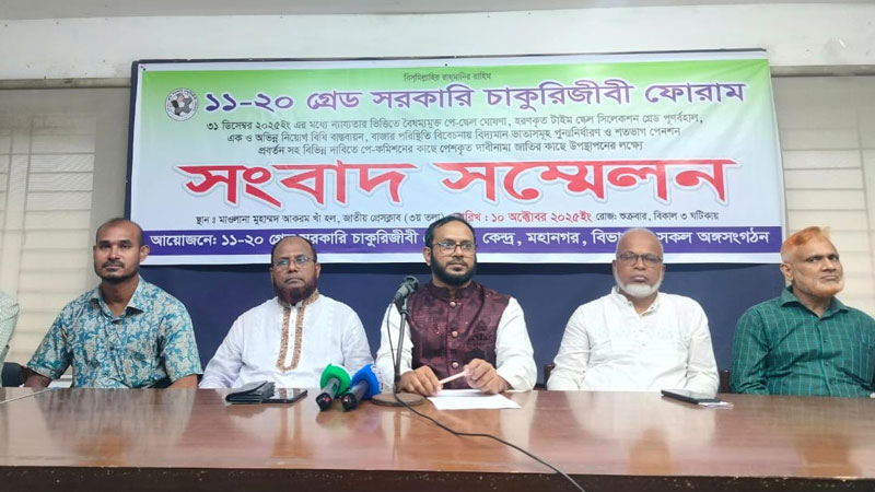 শুক্রবার (১০ অক্টোবর) জাতীয় প্রেসক্লাবের মাওলানা মোহাম্মদ আকরাম খাঁ হলে আয়োজিত সংবাদ সম্মেলনে এ দাবি জানান ১১–২০ গ্রেড সরকারি চাকরিজীবী ফোরামের সাধারণ সম্পাদক মো. মাহমুদুল হাসান।
